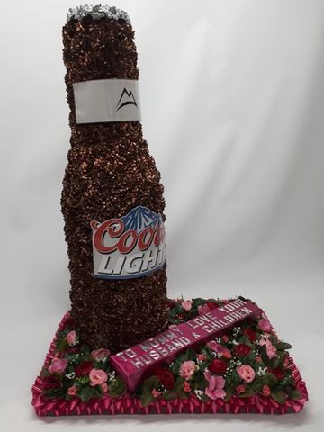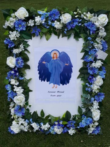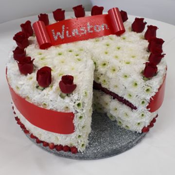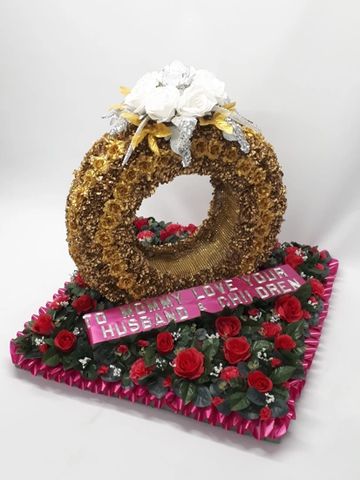 Tributes can be based with real or artificial flowers, price is dependent on size, flowers and customers colour choice